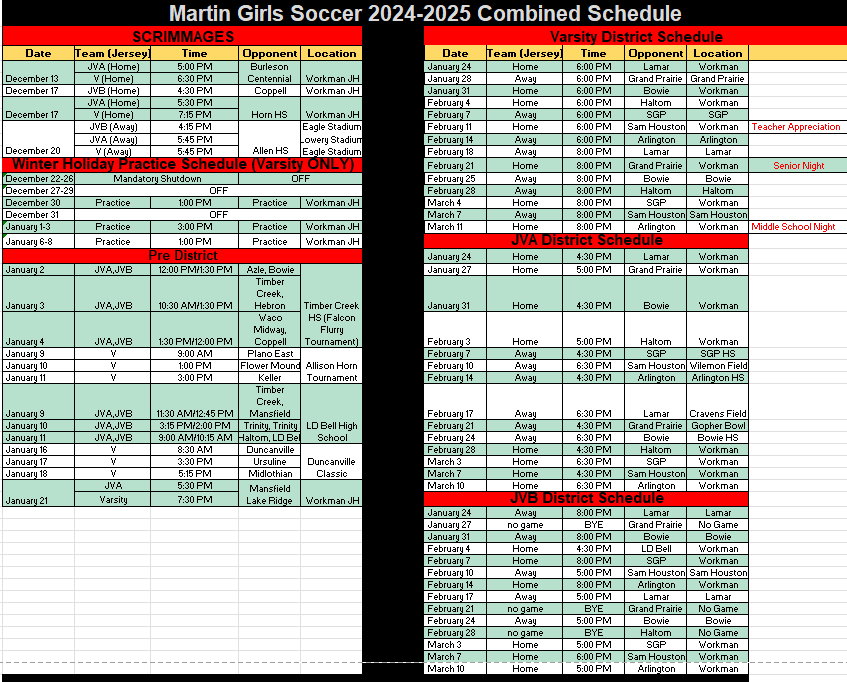 MARTIN HIGH SCHOOL LADY SOCCER Instagram Facebook X LADY WARRIORS 2024-2025 2025-2026 ROSTERS Rosters COACHES Varsity Coach Ryan Cook JV-A Coach Solis JV-B Coach Kummerfeld Team Photos by Larry LADY WARRIORS V/JVA/JVB SCHEDULE WARRIORS Next Booster Club Meeting: TBD Sports You – Parents QR code: martinladysoccer@martinlaysoccer Home